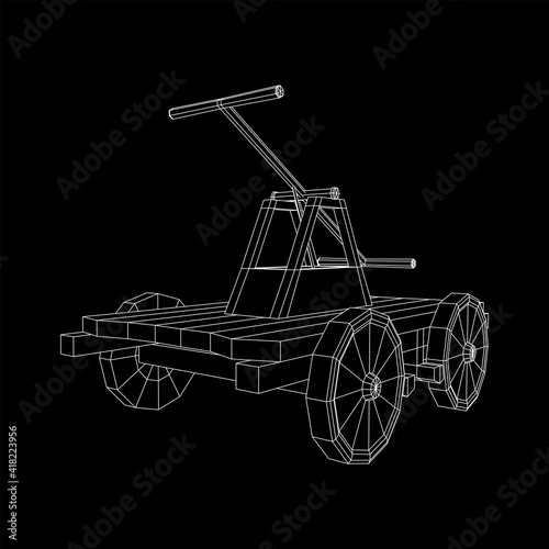Handcar transportation. Draisine or rail vehicle. Wireframe low poly mesh vector illustration.