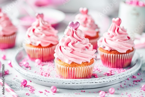 Handcrafted Vanilla Cupcakes Topped With Pink Frosting and Sprinkles