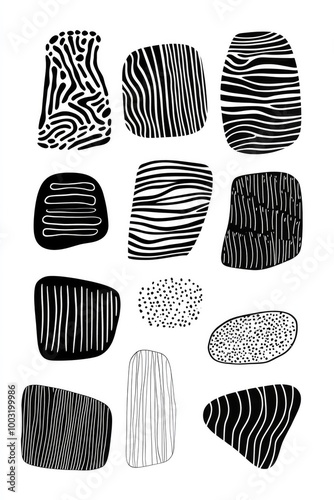 Hand-Drawn Abstract Minimalist Mid-Century Vector Set with Geometric Shapes and Striped Line Art in Monochrome