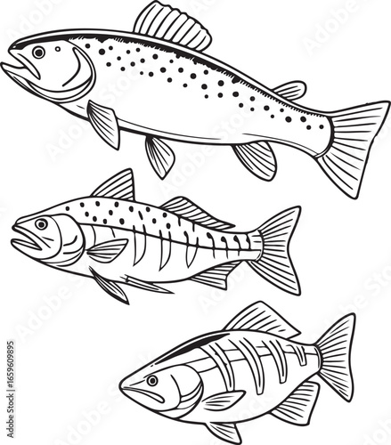 Hand-drawn aquatic fish illustration perfect for fishing education and marine life resources