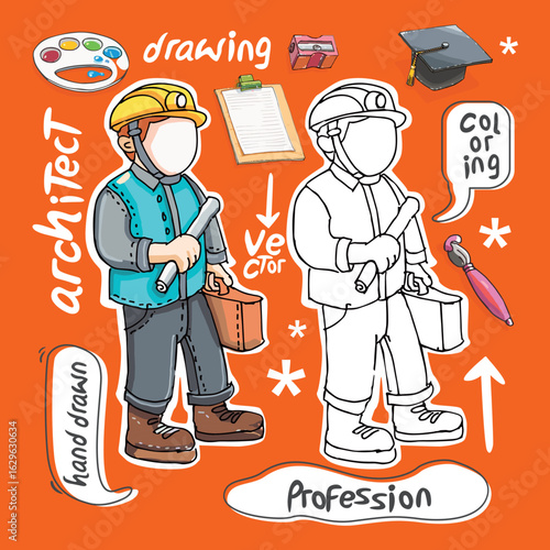 Hand-Drawn Architect Illustration with Colorful Professions Design