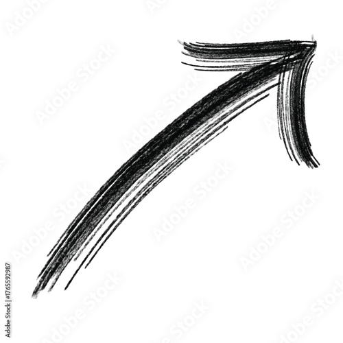 Hand-drawn arrow pointing upwards sketched with a brush isolated on white background