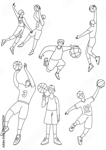 Hand-Drawn Basketball Player Doodles| Dynamic Basketball Player Line Art Set| Sports & Basketball Action Icons