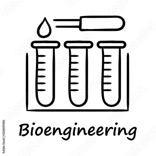 Hand-drawn Bioengineering – Test tubes with a dropper symbolizing biotechnology, genetic research, and medical advancements.