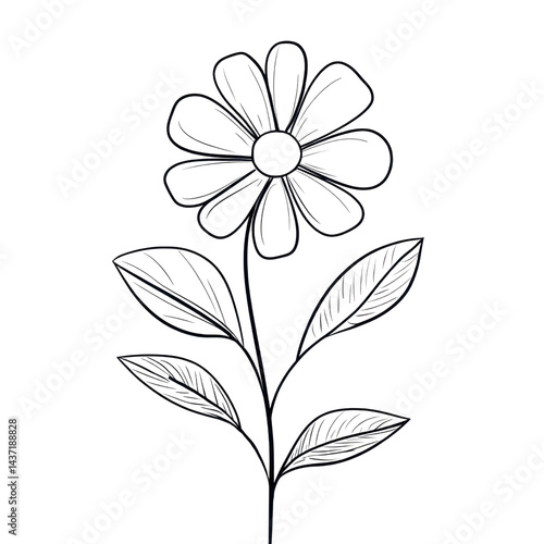 Hand-Drawn Black And White Flower Illustration With Leaves On Transparent Background