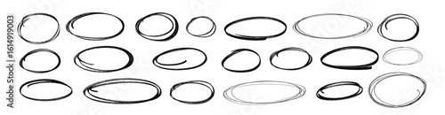 Hand-drawn black ovals and circles set. black scribble ovals and bubbles to circle and highlight text. circle markers or highlighter elements