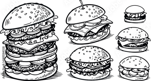 Hand-Drawn Burger Illustrations Set – Vintage Fast Food Sketches