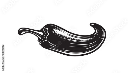Hand-Drawn Chili Pepper Illustration in Black and White with Vintage Engraved Style