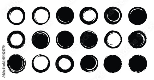 Hand-Drawn Circular Brush Stroke Frames – Grunge and Ink Textures Set on white background