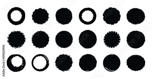 Hand-Drawn Circular Brush Stroke Frames – Grunge and Ink Textures Set on white background