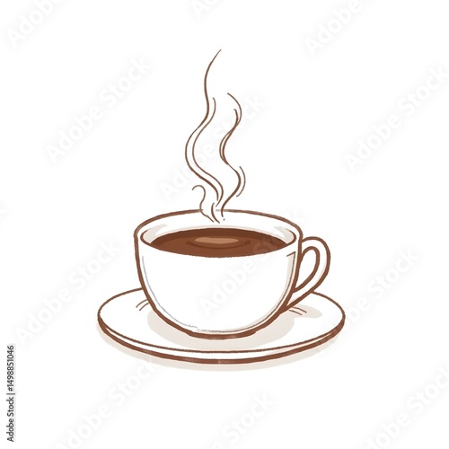 Hand-drawn coffee cup with saucer vector illustration.