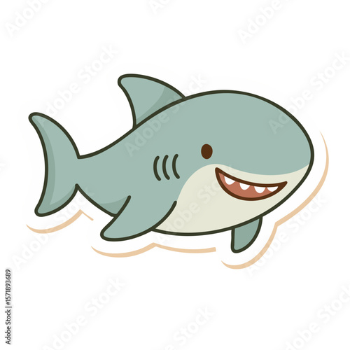 Hand-drawn cute shark in pastel tones with a smiling kawaii face