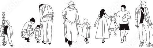 Hand-drawn doodle family border. Outline family clipart. Hand-drawn black art.