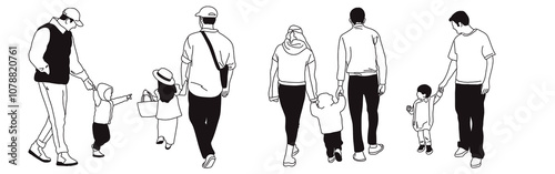 Hand-drawn doodle family icon set. Outline family clipart. Hand-drawn black art.