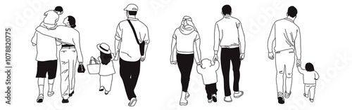 Hand-drawn doodle family icon set. Outline family clipart. Hand-drawn black art.