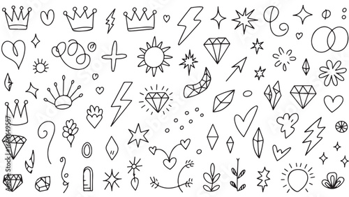 Hand-Drawn Doodle Pack: Crowns, Hearts, Diamonds, Stars & More