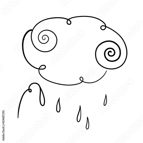 Hand-drawn, doodle sketch of the cloud with swirls. Outline, contour graphics in black on a white background. Simple vector design element, stylized object. For card, sticker, poster, print, pajamas