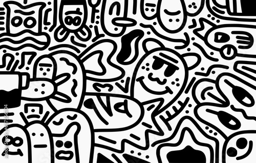 Hand-drawn doodle with black line. Creative abstract illustration that suitable for sticker, drawing book, cover. Isolated on white background