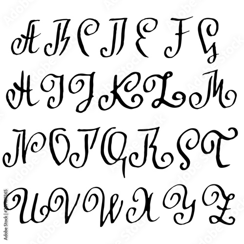 Handdrawn dry brush font. Modern brush lettering. Grunge style alphabet. Vector illustration.