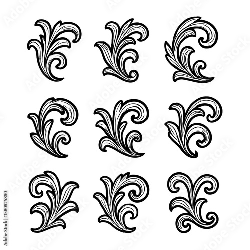 Hand-drawn fleur-de-lis symbol variations in black outline sketch style, Transparent Background
