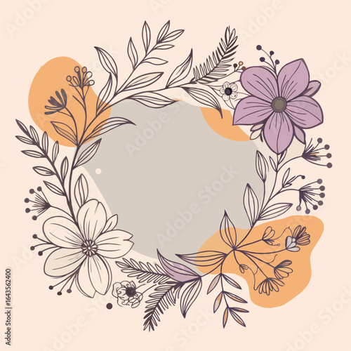 Hand-drawn floral wreath with delicate flowers and leaves.