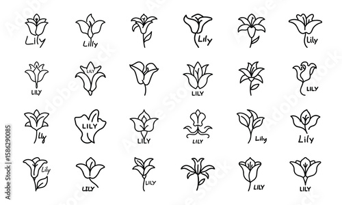 Hand-Drawn Flower Icon Bundle Featuring Lotus, Rose, Lily, Sunflower, Hibiscus, and Other Blooming Floral Designs in Minimal Line Style — Perfect for Web, Botanical Logos, and Nature-Themed UIUX Proje