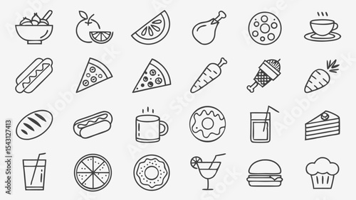 Hand-drawn food and drink icons set: a delightful collection of food, heart, and business symbols perfect for your design illustrations
