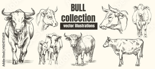 Hand-Drawn Illustration of a Bull – Vintage Black and White Farm Animal Vector Sketch Collection