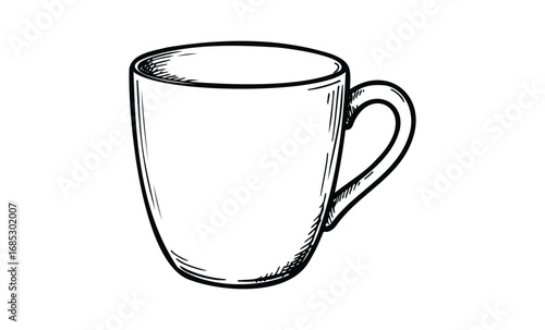 Hand-drawn illustration of a classic tea cup with handle. Vector retro hand drawn illustration