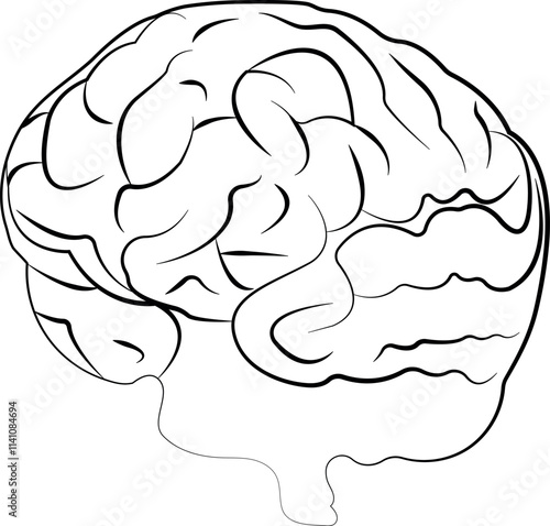 Hand-drawn illustration of a human lateral brain in black and white. The brain's structure. Vector