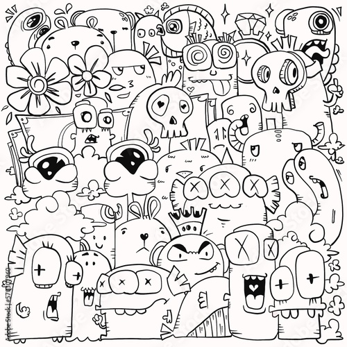 Hand-drawn illustrations, monsters doodle, Hand drawn cartoon monster illustration, Cartoon crowd doodle hand-drawn pattern, Doodle style.