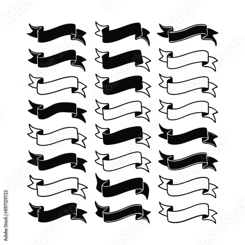 Hand-Drawn Monochrome Ribbon Vector Set – Elegant Decorative Elements