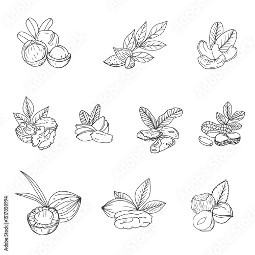 Hand-Drawn Nut and Seed Vector Illustrations Set