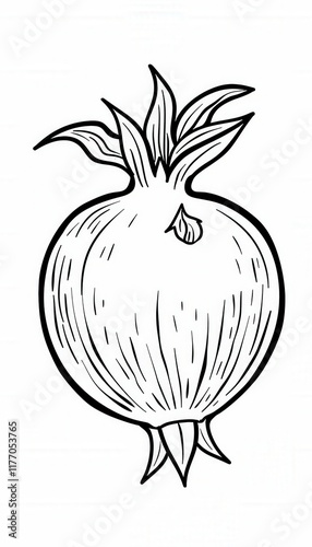 Hand-drawn onion illustration. Ideal for recipe books, menus, or food packaging. Adds a rustic touch to designs.