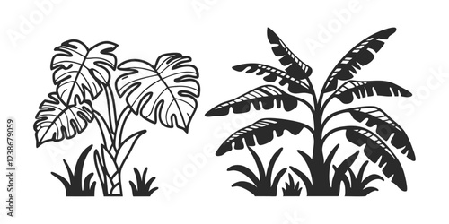 Hand-Drawn Palm Leaf Illustration – Tropical Jungle Monstera & Banana Leaves