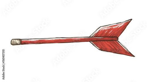 Hand-drawn red arrow flying isolated on transparent background, archery or hunting vintage colorful element