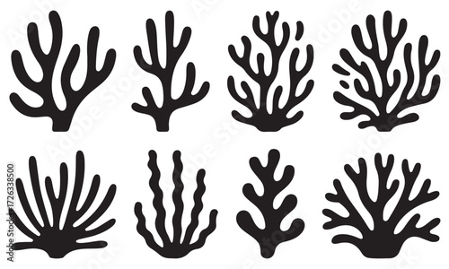 Hand-Drawn Seaweed and Coral Silhouette Collection