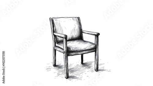 Hand-drawn sketch of an armchair, isolated on white background, for graphic design, illustration, or education
