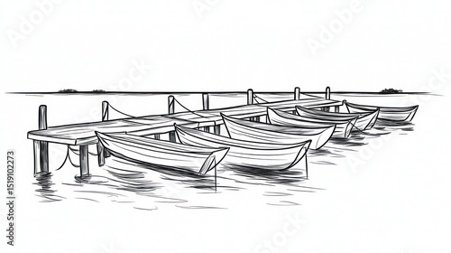 Hand-drawn sketch of boats moored at a dock