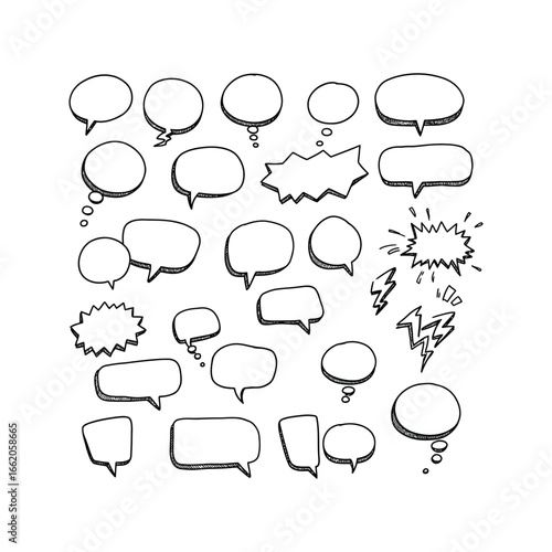 Handdrawn speech bubble set various shapes comic book style blank templates for design