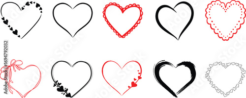 Hand-Drawn style Heart Frames Set. Vector Heart Shapes and Frames. Love, Wedding icons. Decorative Heart Borders and Outlines. Hand-Sketched Design Elements.