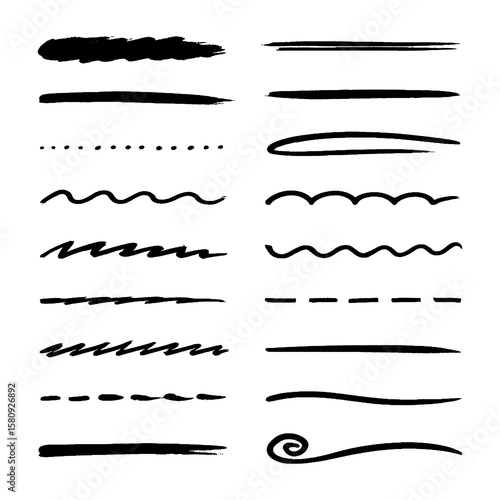 Hand-drawn underline and divider brush strokes set with various styles and textures, Transparent Background