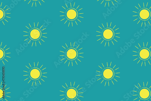 Hand-Drawn Vector Pattern of Yellow Suns on Blue Background