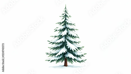 Hand-Drawn Watercolor Clipart of Tall Pine Tree with Snow-Covered Branches on White Background - Perfect for Nursery Art and Decoration | Cute Flat Vector Illustration for Kids' Rooms