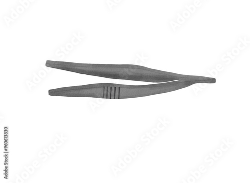 Hand-drawn watercolor illustration of a medical forcep isolated on a white background.