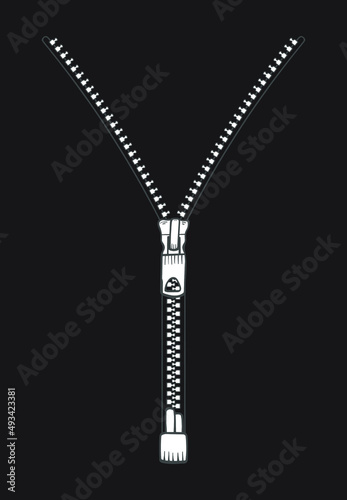 Hand-drawn zipper closure close-up. Zipper outline. Line art Vector Illustration on black background