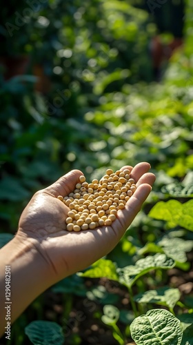Handful of Soybeans in a Lush Green Soybean Field Agriculture Harvest