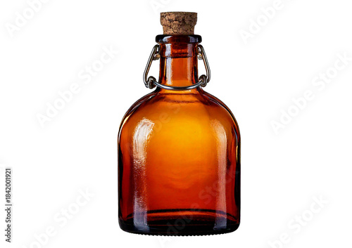Handle equipped brown glass bottle. isolated on a transparent or white background.