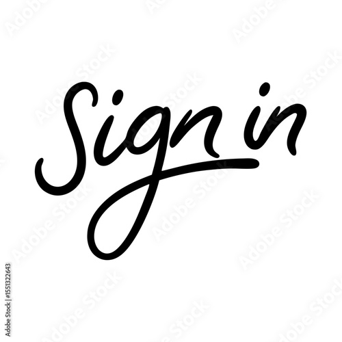 Hand-lettered sign in displayed on white background. Simple sign in calligraphy provides direct entry. This hand-lettered sign in can be used for storefronts, digital platforms,