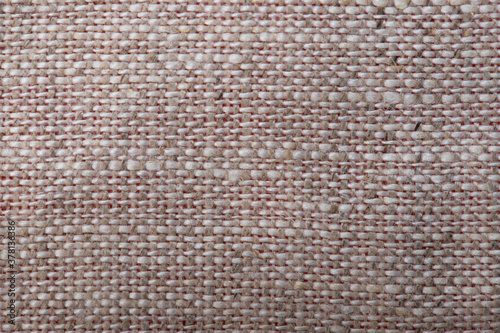 handmade fabric made of linen and cotton fibers of plain weave, beige background, macro